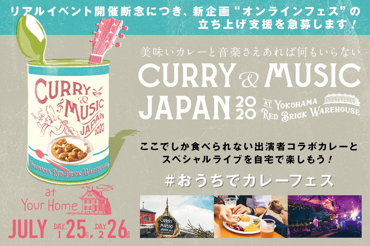 来年は、笑顔で、快晴の横浜赤レンガ倉庫でお会いできるのを楽しみに、 今年はあなたの“おうち”に、 最高のカレーと最高の音楽をお届けします! CURRY is MUSIC!